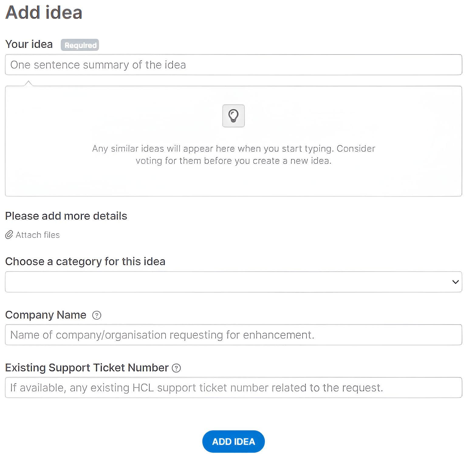 - Select Ideas Portal in Category and https://dfmpro.ideas.hcl-software.com/ in the description
